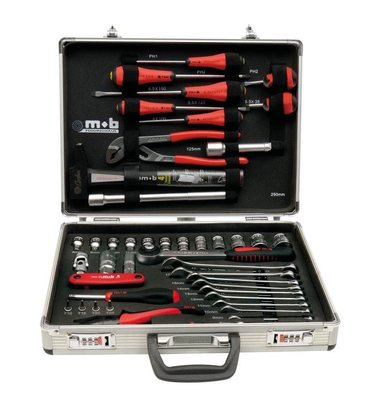 У наборах ви знайдете весь необхідний інстурмент : ключі гайкові, накидні, комбіновані, викрутки, молотки, плоскогубці і багато іншого. Все розфасовано спеціальними відсіками і надійно зафіксовано.