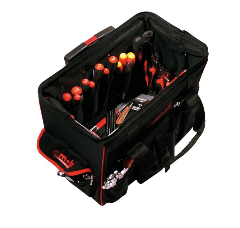 Міцна сумка з великою кількістю кишень під інструмент різної величини. Відмінне рішення для слюсарних робіт. Набір складається із двадцяти чотирьох високоякісних ручних інструментів. Це і молоток, викрутки, ріжкові ключі різних розмірів, комплект шестигранних ключів тощо. Високоякісний німецький інструмент!