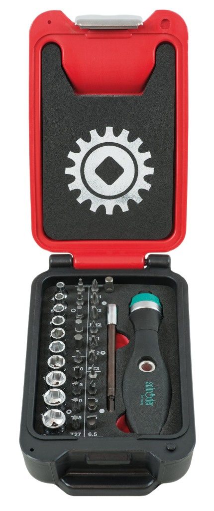 Компактний набір біт та накидних головок у міцному пластиковому кейсі з акуратно зробленими пазами для комплектуючих. Хороше рішення для професійного мебляра чи чудовий подарунок чоловікові на свято.